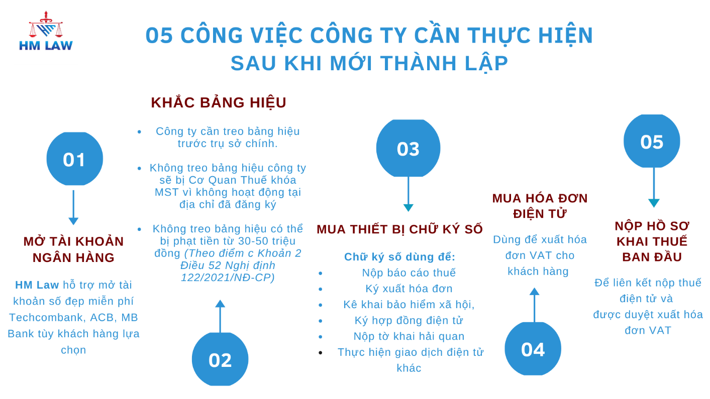 🏢 NHỮNG VIỆC CẦN THỰC HIỆN SAU KHI THÀNH LẬP CÔNG TY